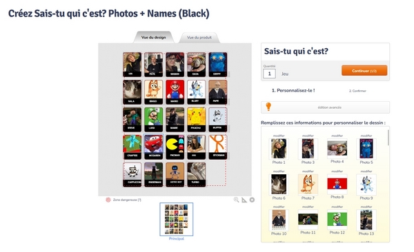 Pour créer ce cadeau personnalisé enfant, c’est rapide : on sélectionne 24 photos ou images et le logiciel s’occupe du reste. J’ai fait le choix d’utiliser de vraies photos pour les membres de notre famille et d’ajouter les personnages qu’il aime : Minecraft, Pokémon, Brainrot… C’est un succès, il a voulu enchaîner les parties !