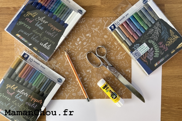Pour une fois c’est Ninie qui nous propose une toute nouvelle activité ! Décembre oblige, c’est le moment de lancer la période des jolies cartes de Noël. Pour cette première carte de Noël de l’année, c’est de la calligraphie qui vient habiller notre jolie carte à offrir. Pour ce premier essai en calligraphie, Ninie a utilisé les feutres metallic calligraphy que Staedtler a eu la gentillesse de nous envoyer, mais pas seulement.