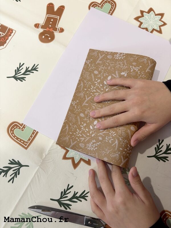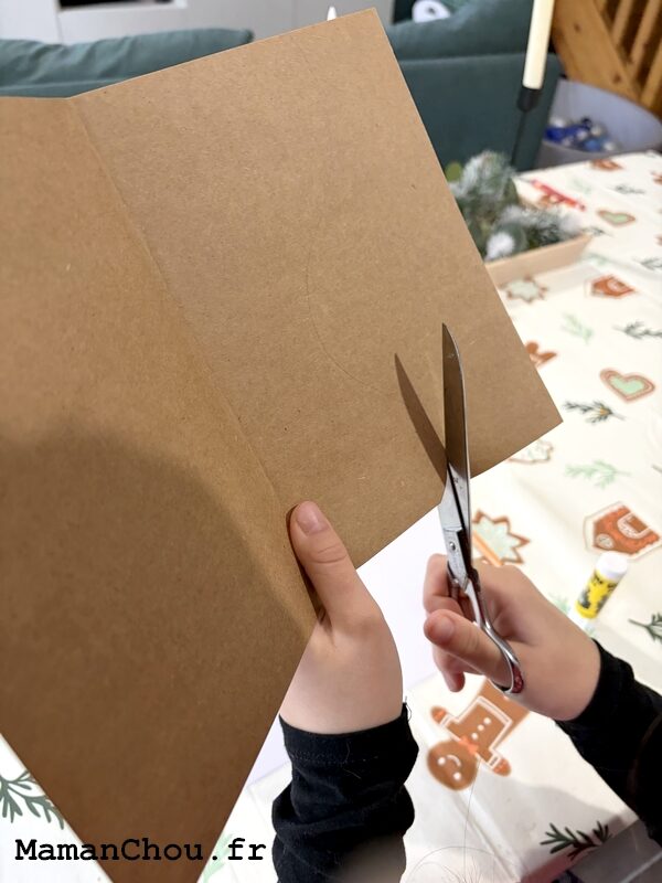 - On dessine une « vague » sur ce qui sera la première page de notre jolie carte de Noël puis on découpe.