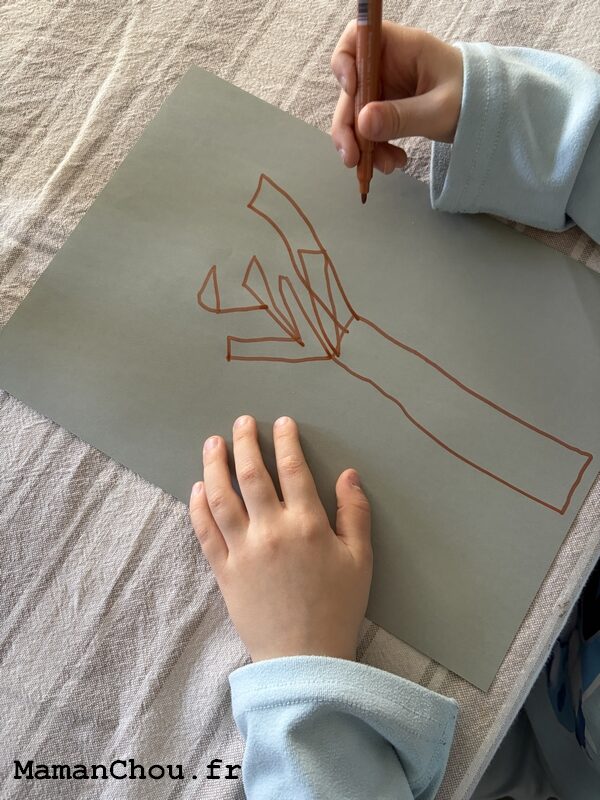 Pour la première fois, j’ai proposé à Trotro de réaliser lui-même le tronc de son arbre. D’habitude, nous utilisons l’empreinte de son avant-bras, il était vraiment content de changer !